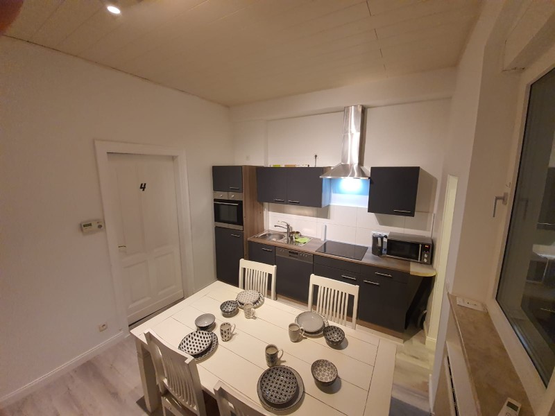 Jeder Zimmer, ca. 10 m², EG und OG mit Bad und Einbauküche mit Kochfeld, Microwelle, Backofen, Kühlschrank, Gefrierschrank, Waschmaschine, Fahrradhof, KFZ Stellplätze , schnelles Internet/W-Lan 100 Mbits