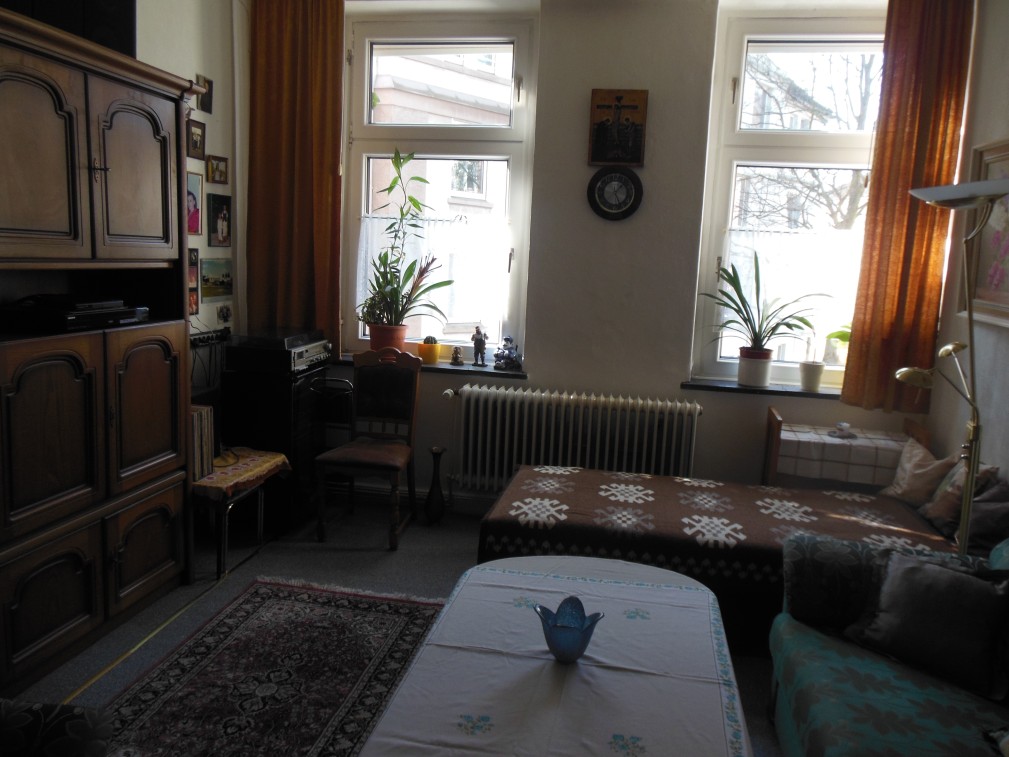 Das Haus befinden sich in einer ruhigen Einbahnstraße, hat eine gute Anbindung an öffentliche Verkehrsmittel. Diverse Einkaufsmöglichkeiten in 200-300 m Entfernung. Es wohnen weitere 4 Personen in dem Haus, verteilt auf das 2., 3., und 4. OG, in Parterre ist ein Übersetzungsbüro.
