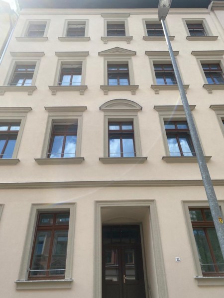 Bei diesem ansprechenden Kulturdenkmal handelt es sich um eine Wohnung im Erdgeschoss mit gehobener Innenausstattung. Ein gemütliches Zimmer sowie eine große Wohnküche mit praktischem Schnitt bieten einen ruhigen Blick ins Grüne. Die 3-Raum-Wohnungen befinden sich in den oberen Etagen und bieten einen hervorragenden Schnitt der sich ebenfalls für WG´s eignet. Die letzte Modernisierung fand 2021 statt. Besonders hervorzuheben ist der Balkon mit eigenem Gartenanteil, auf dem es sich wunderbar vom Alltag erholen lässt. Praktischerweise gibt es auch einen Kellerraum und Fahrradstellplätze im Hinterhof.