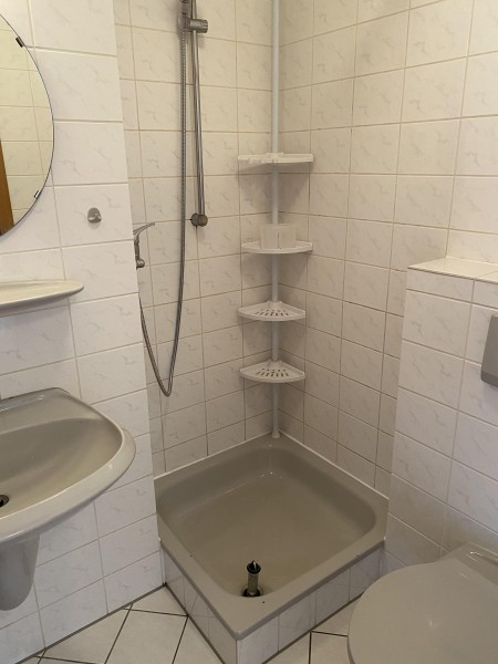 Dieses 1 Zimmer Appartement mit ca. 25m² verfügt über ein Wohn/-Schlafzimmer mit Balkon, ein innen liegendes Duschbad und einen kleinen Flurbereich, einen Kellerverschlag, sowie eine Pantry-Küche mit zwei Kochplatten, Oberschrank und Kühlschrank mit Gefrierfach.