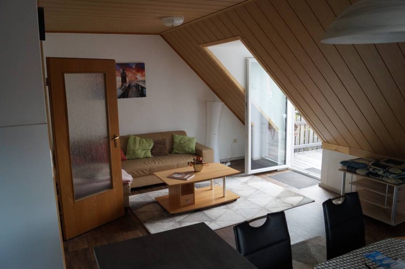 68m², 1. OG, 3 Zimmer, großer Balkon 20m², Wohnraum mit integriertem Essplatz und kpl. eingerichteter Küche mit Kücheninsel, elektrische Geräte inkl. Spülmaschine, Bad mit Dusche, Toilette und Badewanne, Schlafzimmer mit Doppelbett, Zweites Schlafzimmer mit 2 Einzelbetten.