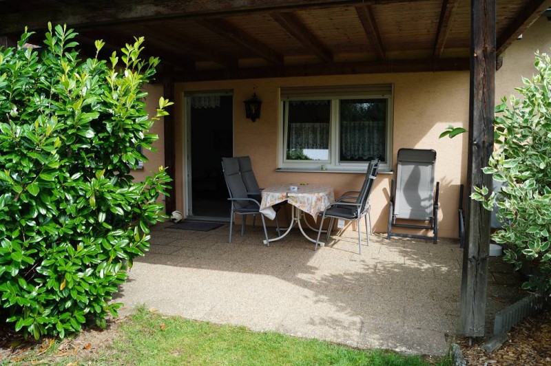 54m², EG mit überdachter Terrasse und Gartenmöbeln, 2 Zimmer. Wohnraum mit integriertem Essplatz und kpl. eingerichteter Küche mit Kücheninsel, elektrische Geräte incl. Spülmaschine, Bad mit Toilette und Dusche.