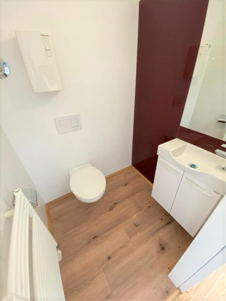 Die ca. 120 qm teilen sich auf in: eine offene, großräumige Bürofläche inklusive Küchenbereich mit stilvoll integriertem, lichtdurchflutendem Atrium, eine weitere äußerst großzügig geschnittene Bürofläche (auch in 2 Zimmer aufteilbar), ein modernes Badezimmer mit hochwertiger Ausstattung sowie eine weitere, im ersten Geschoss gelegene, Bürofläche mit anliegendem, modernem Kunden-Badezimmer.