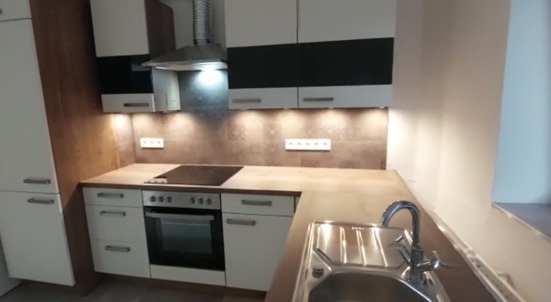 Die Küche ist mit allen notwendigen elektrischen Haushaltsgeräten ausgestattet und verfügt über einen eingebauten Kühlschrank sowie eine klare Glastür. Das Badezimmer wurde komplett erneuert und hat eine bodenebene Dusche. In der gesamten Wohnung sind Parkettböden verlegt. Alle elektrischen Betriebsmittel wie Schalter, Steckdosen und Deckenleuchten wurden ebenfalls erneuert. Im Hinterhof gibt es Abstellmöglichkeiten für z.B. Fahrräder oder diverse Gegenstände.