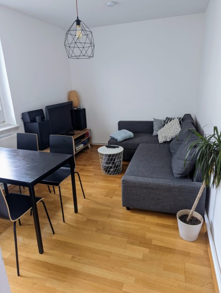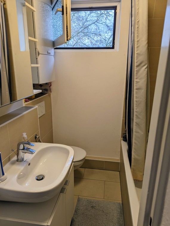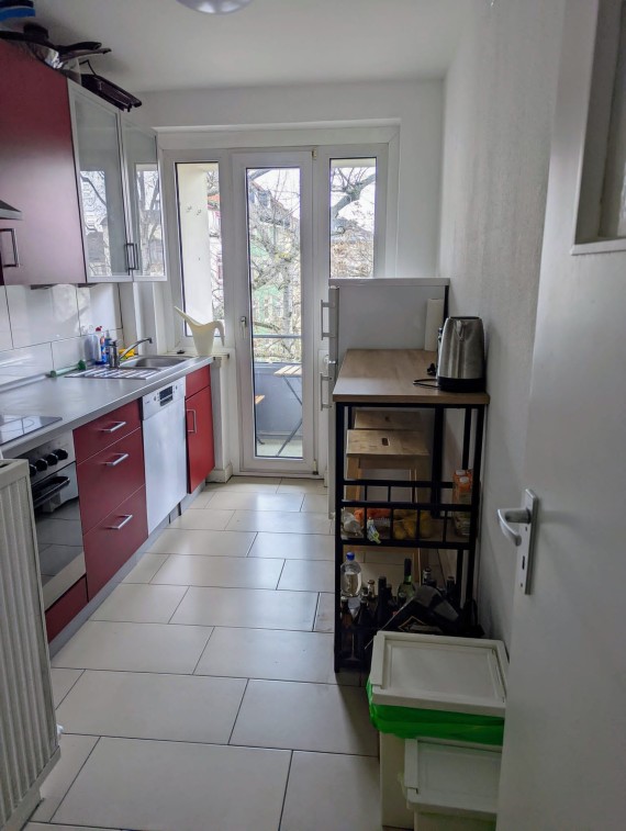 Das helle WG-Zimmer bietet durch eine breite Fensterfront direkten Blick auf den Merianplatz und ist vollmöbliert (Bett, Schreibtisch, Regal, Kleiderschrank, Kommode) und soll so übernommen werden. Auch die restliche Wohnung ist bereits top ausgestattet (z.B. komplett eingerichtetes Wohnzimmer mit Couch, Esstisch, etc.; Küche inkl. Geschirrspüler und allen weiteren wichtigen Utensilien, sowie Vorhandensein einer Waschmaschine), was einen reibungslosen und einfachen Einzug ermöglicht.