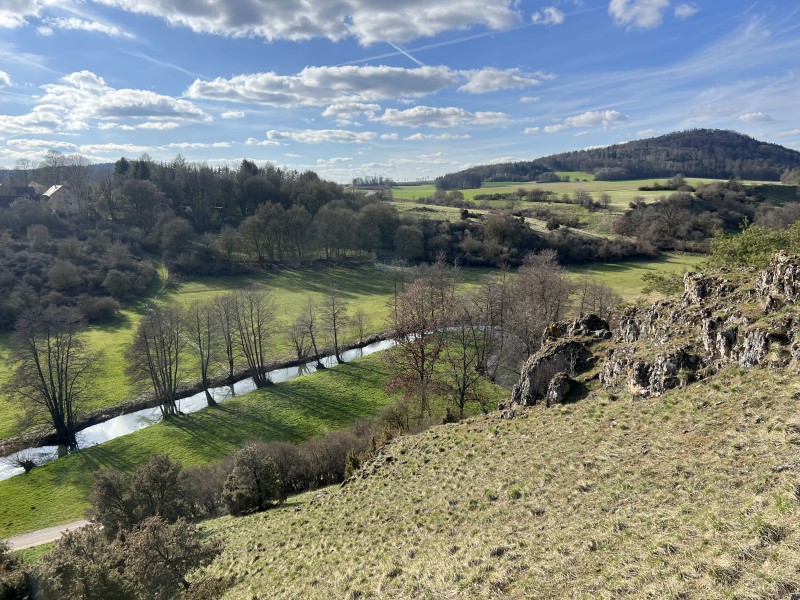 Hier beginnt bereits die wunderschöne Hersbrucker Schweiz. Außenrum erstrecken sich Hügel, Wälder und Felder. Siehe Fotos.