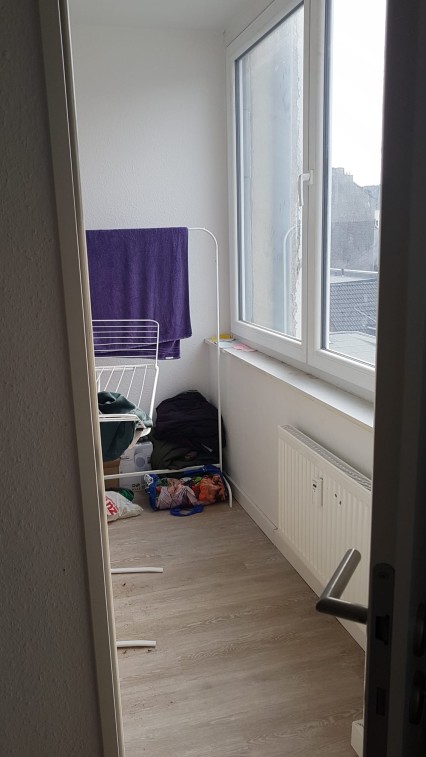 Gegenüber ist ein von Kirchblüten überdeckter Spielplatz inklusive Tischtennisplatte. Daneben ein türkischer Supermarkt und die Straße hoch ist ein Penny. die nächste Bushaltestelle ist 5 Minuten entfernt.