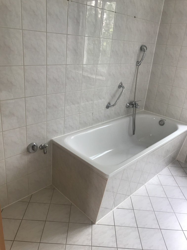 Die Wohnung verfügt über 4 Zimmer + separatem Essbereich neben der Einbauküche, ein Badezimmer mit Badewanne und WC und separatem Gäste-WC mit Dusche. Der Fußboden der Wohnung ist aus Laminat bzw. gefliest.