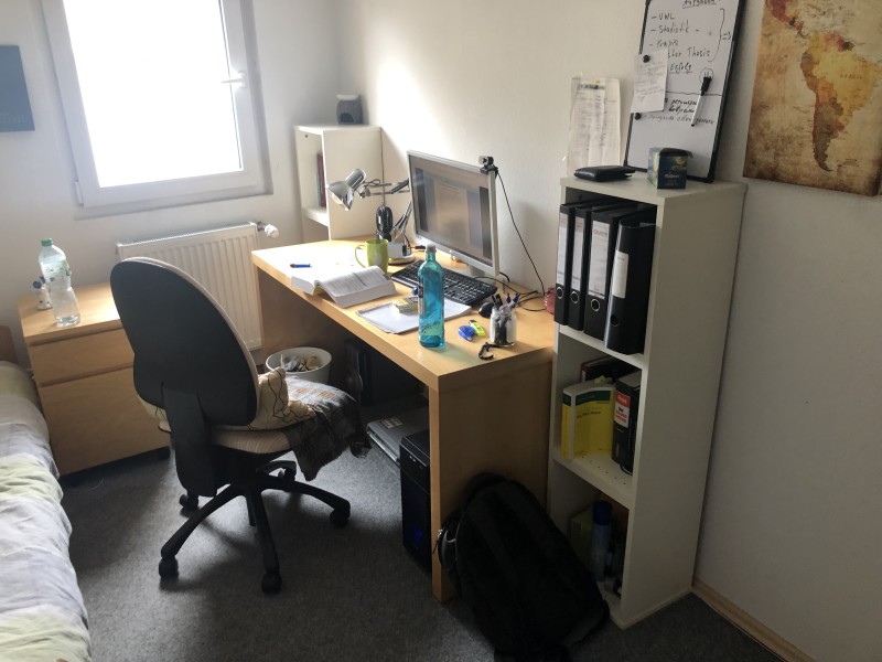 Hi Leute. Ich suche Nachmieter für mein altes Zimmer. Das Zimmer ist sehr gemütlich und erfüllt alle studentischen Bedürfnisse. Darüber hinaus verfügt WG über ein geräumiges Gästezimmer, eine Terrasse und eine Küche. Die Nachbarn sind sehr nett. Die WG ist eine Minute zu Fuß von der Bushaltestelle entfernt. Das ist Zweck-WG. Das einzige, was vom Mieter verlangt wird, ist die Immatrikulation an einer Hochschule