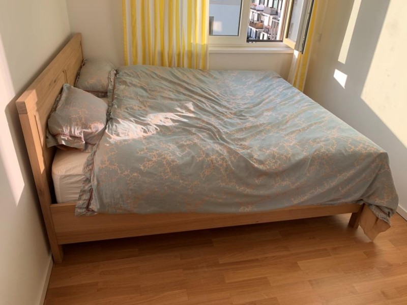 room 1: sleeping room equiped with three Höffner defined furniture sets( 1.8 meter wide double bed with a 1.000€ worthy comfortable mattress; a four doors -closet and a sideboard)