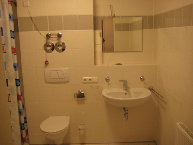 Badausstattung Sanitär-Standart Keramik weiß, Einhebelmischarmaturen, bodengleiche Duschen mit rutschhemmendem Bodenfliesen-belag / Duschablauf, Waschmaschinenanschluß, elektrische Abluftsteuerung