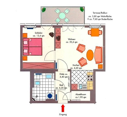 Im Hause befinden sich 47 Wohnungen in den Größen von 44 – 86 m². ausgestattet, mit Terrasse im Erdgeschoss, Balkon oder Loggia.