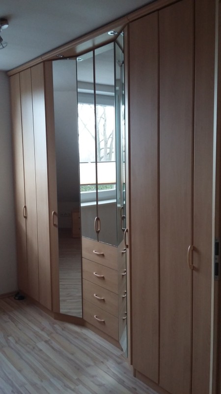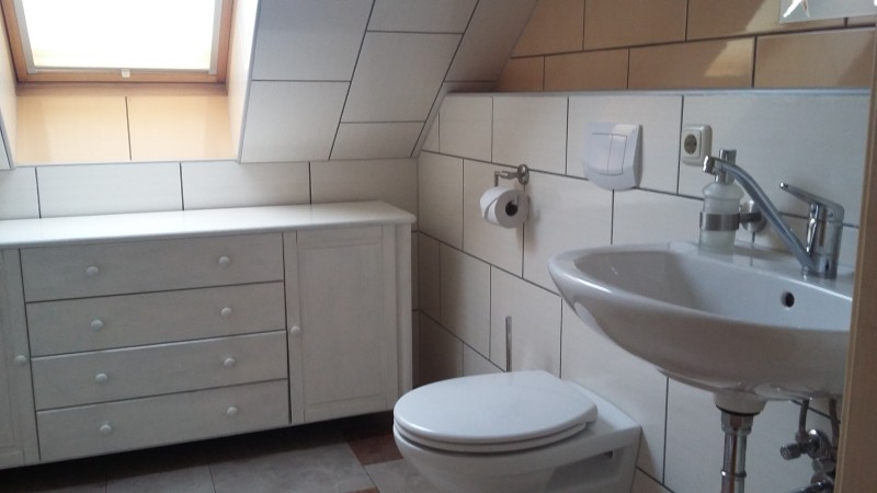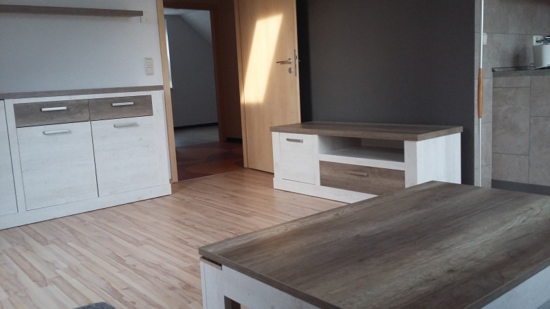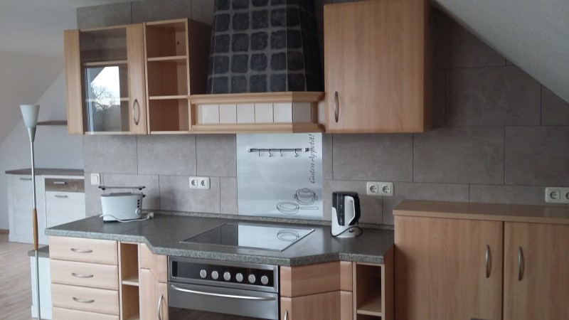 Wir bieten zur Wohnraummietung eine sehr schöne und geräumige 3-Zimmer-Wohnung im OG unseres EFH an - in ländlicher Idylle gelegen, ca. 7-8 Km vom Stadtzentrum Rostock (mit Bus, Bahn, Auto Fahrrad erreichbar). Die Wohnung ist hell und freundlich saniert, modern möbliert und mit dem nötigen Inventar sowie Fußbodenheizung ausgestattet. Die Rohbaufläche beträgt 79,74 m², abzgl. der Dachschrägen beträgt die Wohnfläche 57, 11 m². Der Zugang zur Wohnung in das OG erfolgt über eine Holztreppe, deren Stufen zur Trittsicherheit mit Stufenbelag versehen sind. Der kleine Flur ist unmöbliert. Die Wohnung hat ein schönes offenes teilmöbliertes Wohnzimmer (TV-Board, Sideboard m. Schubladen, Tisch, ausziehbarer Couch - Zustand gebr.) mit separater aber offener Küche im amerikanischen Stil mit Einbauküche, inkl. Herd, Abzugshaube, Spüle mit Unterschrank, Geschirrspüler sowie einem kleinen Esstisch mit 2 Stühlen. Das Schlafzimmer ist ausgestattet mit einem sehr großzügigen Kleiderschrank, 1 Bett und 2 Nachttischschränkchen. Das Gäste-/Arbeitszimmer ist nicht möbliert. Das Bad ist ausgestattet mit Dusche, WC, Waschbecken, Armaturen, Waschmaschinenanschluss und einem Schubladen-Sideboard. Alle Zimmer haben Fenster, eine Deckenbeleuchtung und Rauchwarnmelder.