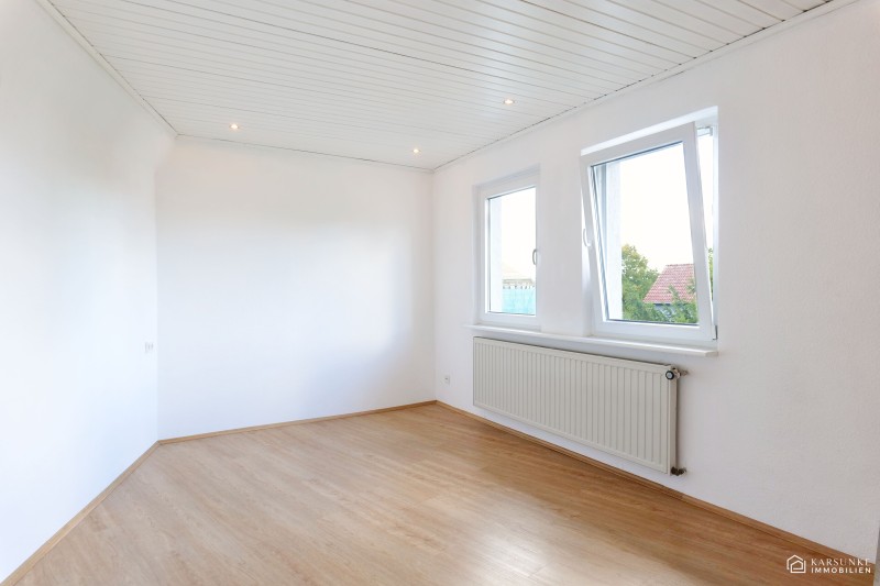 Die 62 m² Wohnfläche verteilen sich über zwei Etagen auf drei Zimmer, Küche und Bad. Die Aufteilung eignet sich hervorragend für eine WG mit 2-3 Personen.