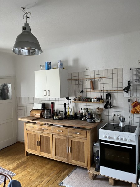 Die Wohnung ist im 2. Stock, hat eine recht große Küche sowie einen Balkon (Südseite). Rauchen ist NUR auf dem Balkon möglich, Wohnzimmer und Küche sind komplett eingerichtet. Es gibt einen Kellerraum und eine Waschküche.