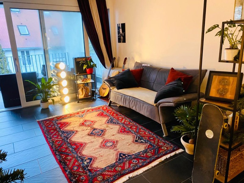 Eine schöne, moderne Wohnung mit hochwertigem Möbel ausgestattet. Die Atmosphäre ist super entspannt und kreativ. Jeder hat Platz für sich selber und für die Gemeinschaft.