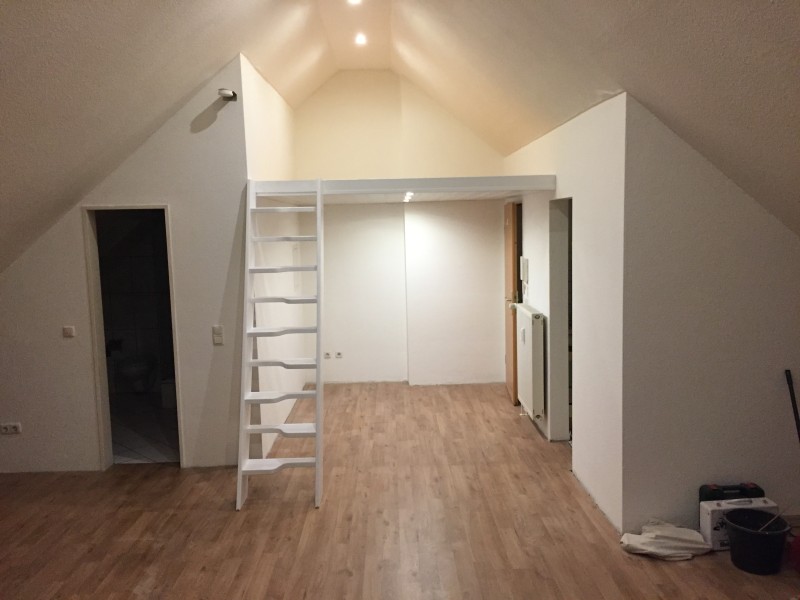 Modernes 1,5 Zi. Apart. im 4.OG ca. 60 m², KM 400€+ NK, KDB, Wohn- Esszi, Schlafbereich auf 2. Ebene, Garten, Waschkeller, Fahrradschuppen, zuzüglich Stellplatz wenn gewünscht.