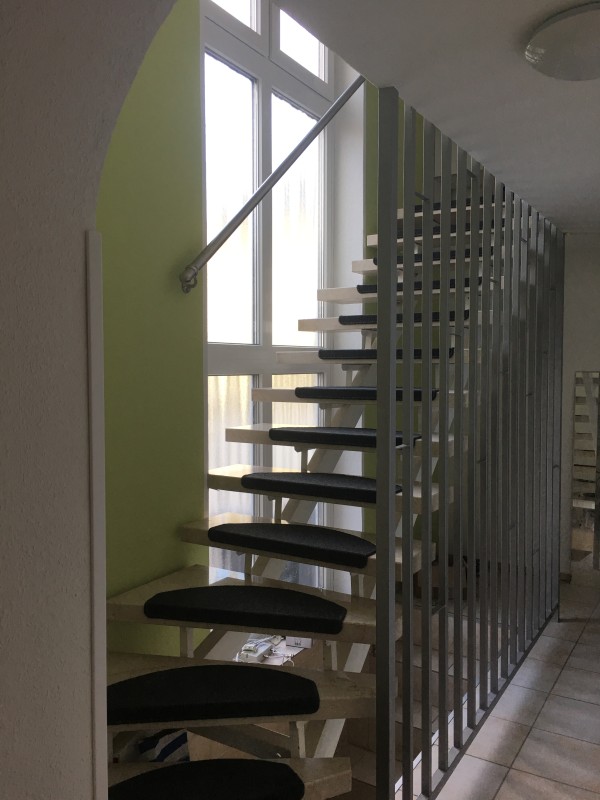 Das möblierte Appartement befindet sich im Frankfurter Stadtteil Praunheim in einer ruhigen Seitenstraße, 3 Minuten von der U-Bahn Haltestelle "Heerstraße" und damit ca. 15 Minuten von der Stadtmitte Frankfurt entfernt. Das Haus aus dem Jahr 1958 wurde 2018 komplett renoviert und besteht aus 2 Mietparteien. Für große Menschen ist die Wohnung nicht geeignet, da die Raumhöhe „nur“ 2,15 m beträgt.