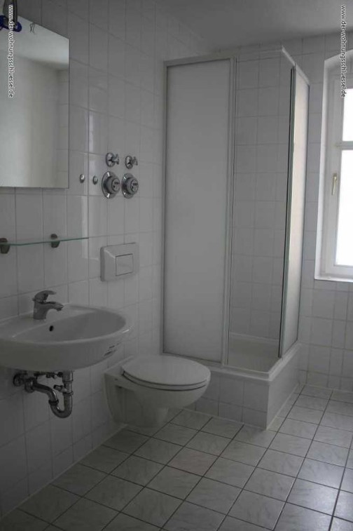 Das Tageslichtbad verfügt über eine Dusche, auch die Waschmaschine kann hier aufgestellt werden.