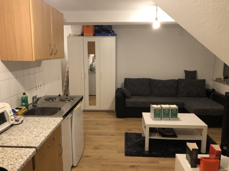 Die 1-Zimmerwohnung besteht aus einem Wohnzimmer mit Wohn-/Kochfläche sowie Arbeitsecke, einerEinbauküche