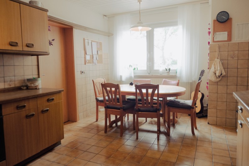 Die Küche ist der Treffpunkt unserer WG. Hier kochen wir gerne gemeinsam, spielen Gesellschaftsspiele, quatschen und stoßen ab und zu gemeinsam auf die gemeisterten Etappen des Studiums an. Wir freuen uns auf jemanden, der Lust auf WG-Leben hat, da wir uns nicht als Zweck-WG sehen. Natürlich hat hier auch jeder seinen Freiraum, wenn er/sie mal etwas Ruhe braucht.