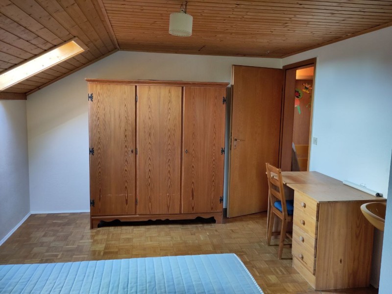 Wir vermieten ein möbliertes gemütliches Zimmer in unserem Haus. Im Zimmer gibt es ein Bett (140x200) mit Nachttisch, einen Vollholz-Kleiderschrank, einen Schreibtisch mit Stuhl und ein Waschbecken. Die voll eingerichtete Küche, das Badezimmer mit Dusche und Badewanne (!) sowie Waschmaschine und Trockner können mitbenutzt werden. Auch der Garten kann zur Erholung genutzt werden :)