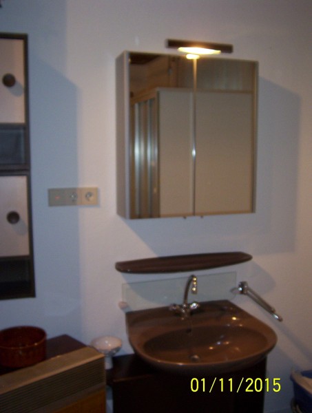 DAS ZIMMER IST WEISS TAPEZIERT MIT RAUHFASER UND HAT EINEN MODERNEN SPIEGELSCHRANK MIT DIREKTER UND INDIREKTER- HALOGENBELEUCHTUNG