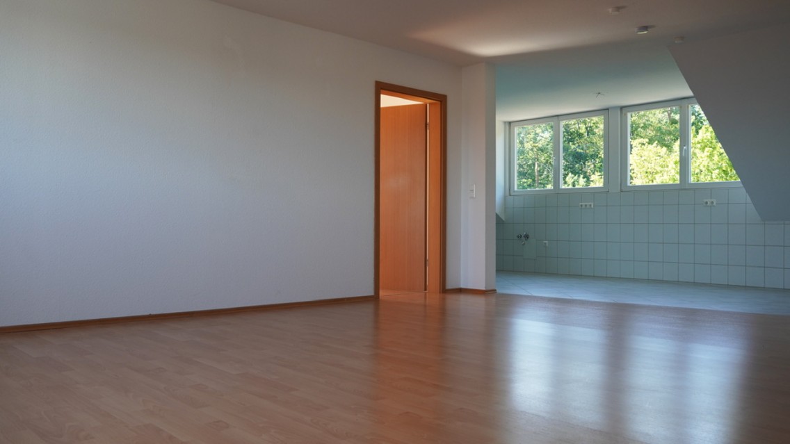 Im dritten Stock befindet sich die schöne, helle und gemütliche Dachgeschosswohnung. Diese kann ab dem 01.08.2023 bezogen werden. Drei attraktive Zimmer, neben der offenen Küche, Flur und Badezimmer, bilden das Apartment. Des Weiteren überzeugt der gute Schnitt, der auch für WGs geeignet ist. Der offene Küchenbereich grenzt an einen großzügig geschnitten Wohnraum an, welcher auch als Gemeinschaftsraum genutzt werden kann.  Zur Verfügung stehen Ihnen außerdem ein Stellplatz für Ihr Auto und ein Kellerraum.