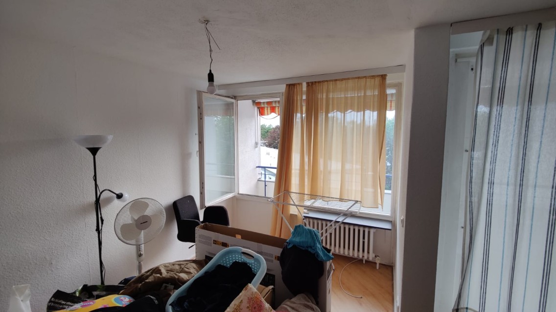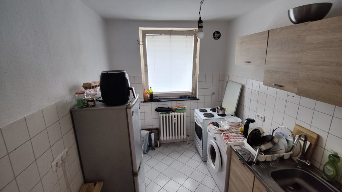 Es handelt sich um eine 2 Zimmerwohnung mit Balkon. Einem großen Flur mit 2 Kammern. WC und Bad sind voneinander getrennt. Es wurde neu tapeziert, renoviert und Laminat verlegt.