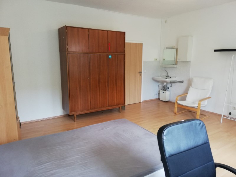 Neben einer voll ausgestatteten Küche und einem Bad hat unsere WG auch nutzbare Gemeinschaftsräume wie ein Wohnzimmer mit Sofas und TV, einen Raum mit Platz zum lernen und auch einen Partykeller mit Theke, an denen man gerne mal auch Freunde aus der Uni einladen kann.