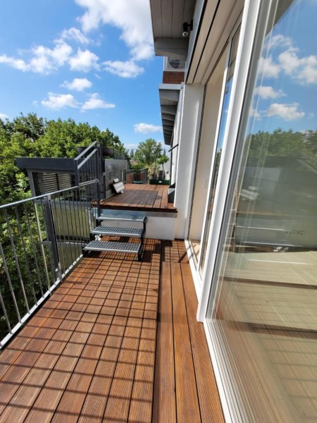 Erstbezug der WG in nagelneuer Dachgeschosswohnung mit Aufzug! Dieses lichtdurchflutete Wohnung mitten in der Stadt ist einmalig! Nicht nur die moderne Architektur, die Lage direkt am Park, auch die Dachterrasse mit ungestörtem Blick ins Gürne lädt zum Verweilen, Entspannen und Träumen, zum geselligen Zusammensein in ein. Von dem Wohnküchenraum mit großen Schiebefensterelementen gelangt man auf die windgeschützte Terrassen mit Abendsonne.