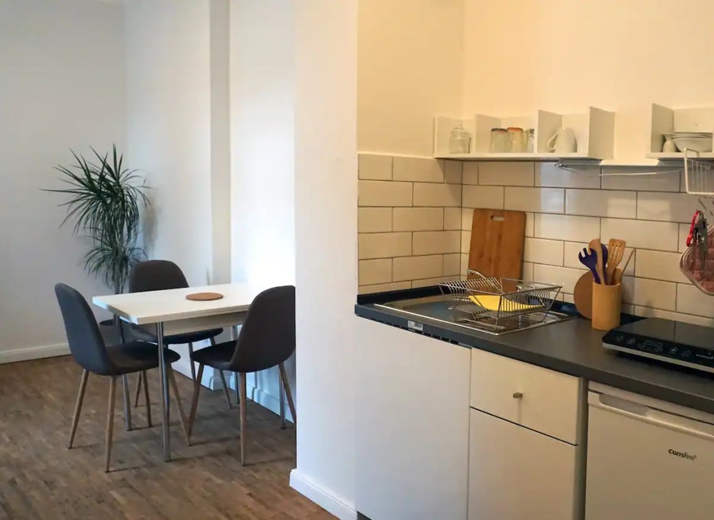 Gemütliche 1 Zimmer Whg. im Erdgeschoss mit Wohnküche und Bad. Blick zum Hofgarten und Straße.