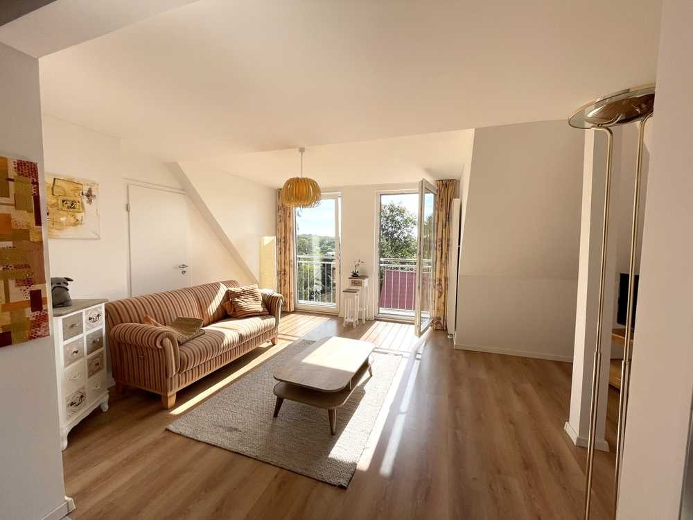 Die modern gestaltete Wohnung liegt in der zweiten Etage im Dachgeschoss eines im Jahr 2018