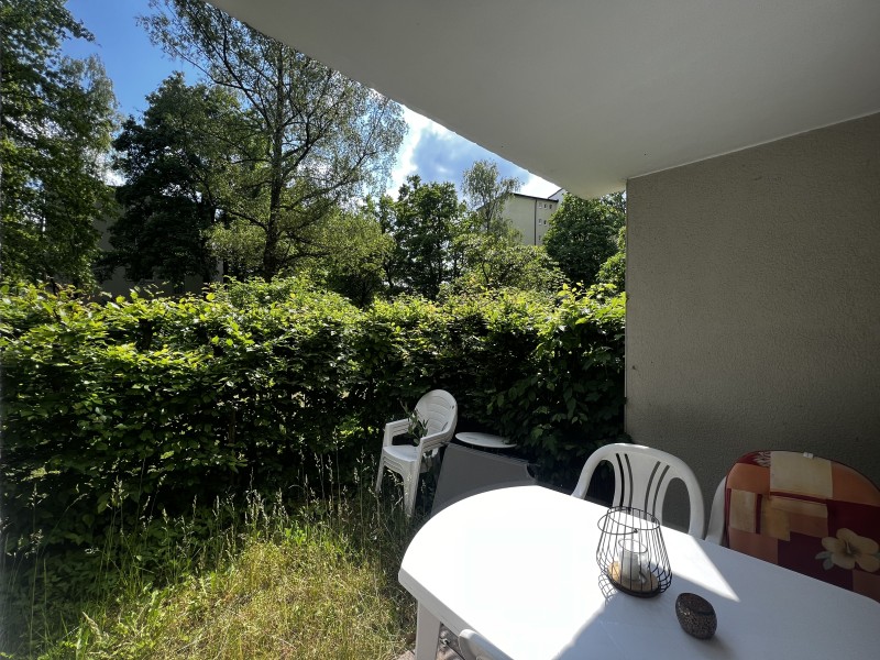 Das Highlight ist mit Sicherheit der kleine gemütliche Garten und die Terrasse. Der Zugang zur Terrasse erfolgt über das andere Schlafzimmer und dies ist somit in gemeinsamer, harmonischer Absprache zu nutzen.