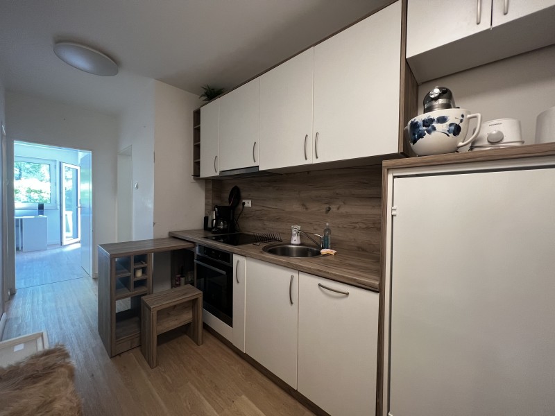 Zudem ist die Wohnung mit einer Einbauküche inkl. Esstisch ausgestattet.