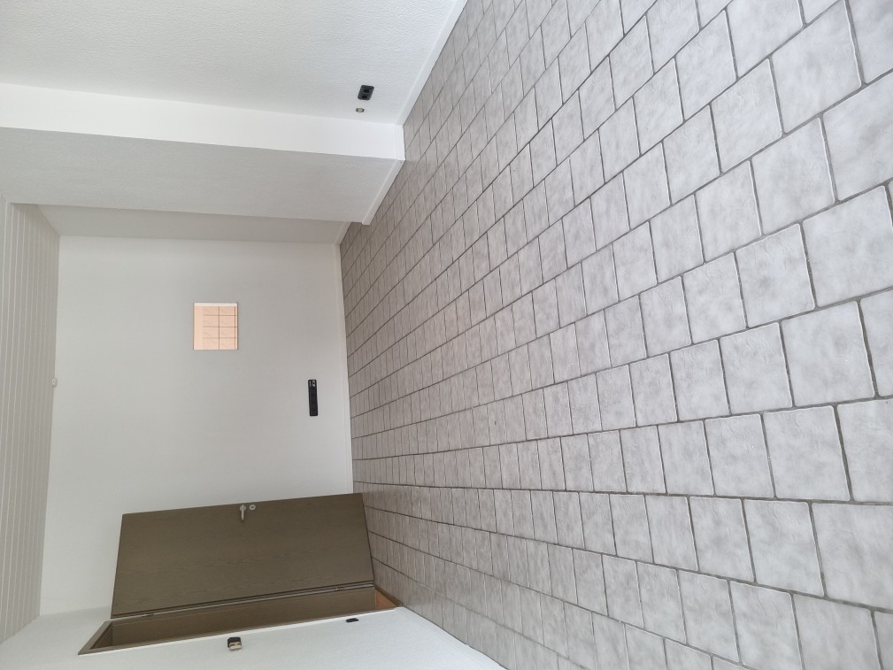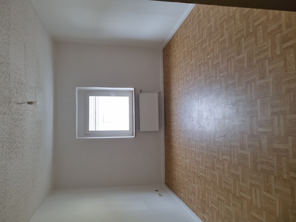 Das Wohnzimmer ist grau gefliest, Küche und Korridor sind mit Laminatboden ausgestattet.
