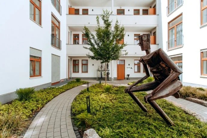 The apartment house is located right in the heart of Frankfurt. All offices in the financial district can be reached on foot in just a few minutes.