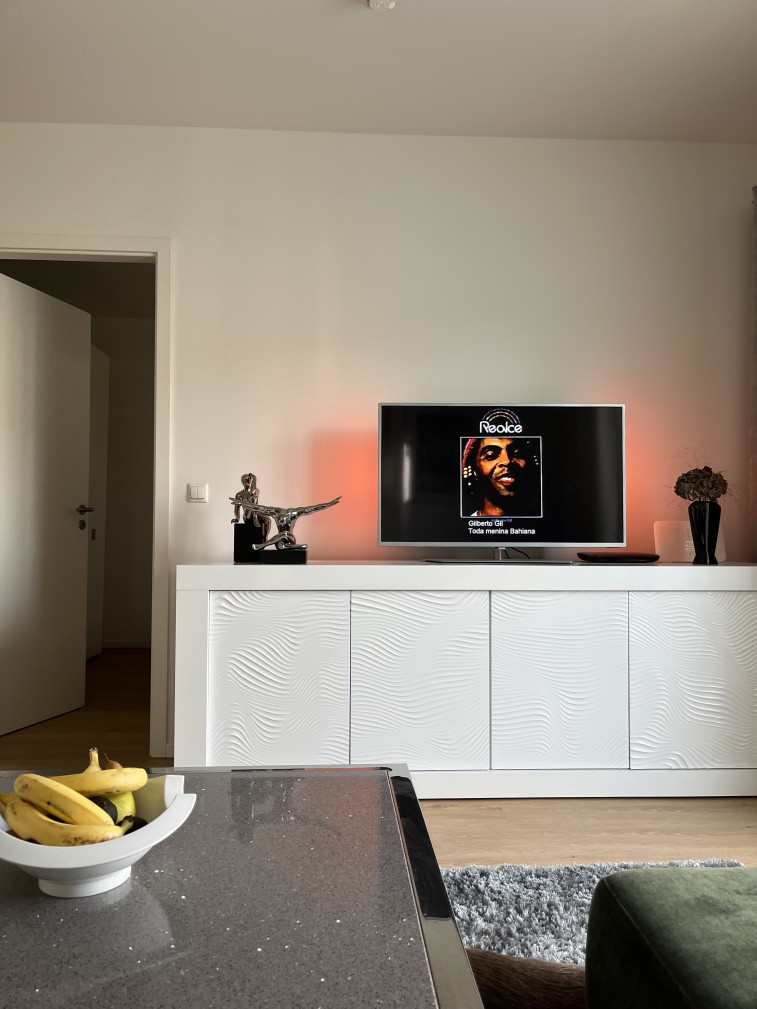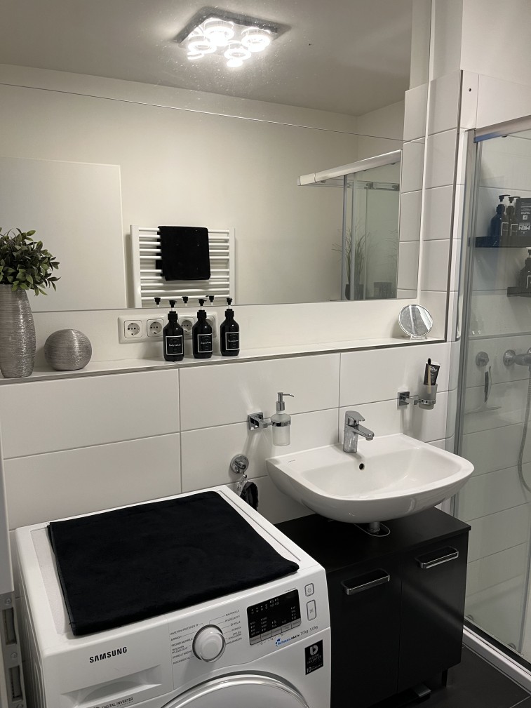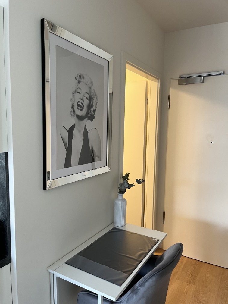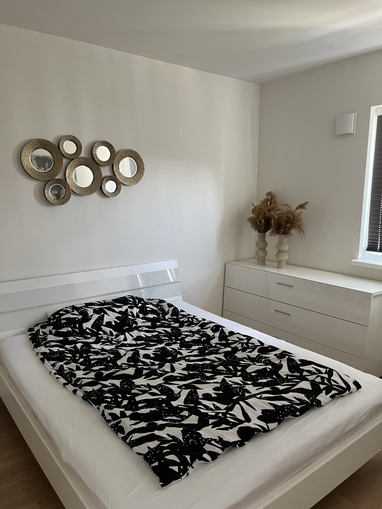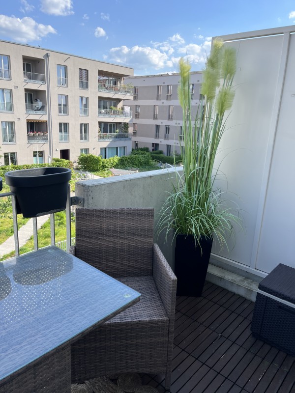 Außerdem verfügt das Apartment über einen großen Balkon, der mit Möbeln und Sonnenschirm ausgestattet ist. Des Weiteren ein modernes Bad mit hochwertiger Waschmaschine & Trockner, eine Kammer, die genug Stauraum für Jacken, Schuhe, Taschen etc bietet. Vorhanden ist ebenso ein Drucker und ein Dyson-Staubsauger. Sowohl im Wohnzimmer als auch im Schlafzimmer, sind alle Möbel vorhanden und in einem außerordentlich guten gehobenen Zustand. Ich bevorzuge Nichtraucher in meiner Wohnung und Haustiere gerne nach Absprache. Die Wohnung ist für 1- 2 Personen geeignet. Die Anbindungen sind perfekt - zum einen sind es nur 10Minuten zum Flughafen, 3 Minuten zur Stadtautobahn, 2min zu Fuß zur translation und 800m zum S-Bahnhof Adlershof. Die Gegend verfügt über einen Landschaftspark, Bäcker, Restaurants. Fitnessstudios, Supermärkte, Ärzte, Kitas, Spielplätze sowie Outdoorfitness-Geräte.