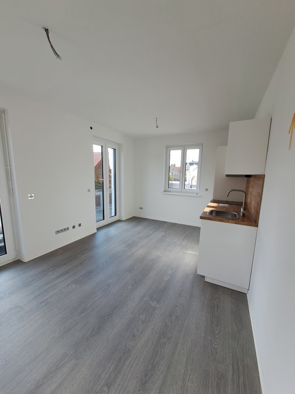 Die offene Küche mit dem Wohnzimmer bildet den Mittelpunkt im neuen Heim. Die Wohnungen wurden mit einem modernen Bad ausgestattet, welches über eine bodengleiche Dusche verfügt. Der Waschmaschinenschluss befindet sich ebenfalls dort. Das Schlafzimmer bietet genügend Platz für einen erholsamen Schlaf. Zu jeder Wohnung gehört im Keller ein Abstellraum, um weitere Gegenstände ordentlich zu verstauen.