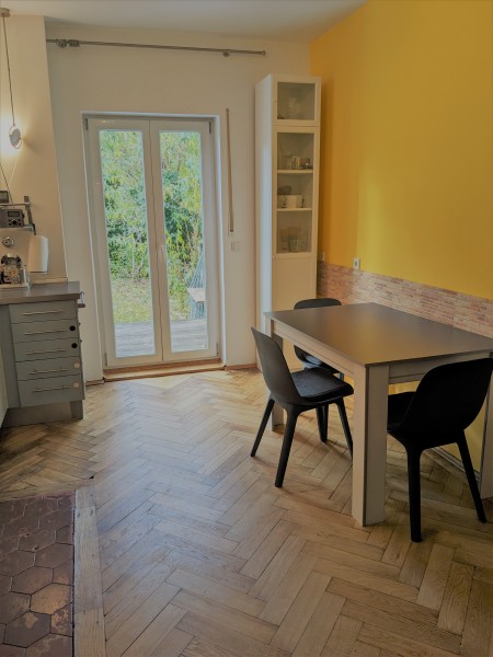 Die 96m2 renovierte Altbau-Wohnung mit Gartenzugang zur Alleinnutzung befindet sich in Sendling, in 3 Minuten Gehentfernung zur U-Bahnhaltestelle Partnachplatz (U6, Bus 54 und 132). Die Wohnung bietet ein abschließbares Schlafzimmer, ein zusammenhängendes Ess- und Wohnzimmer (mit einer zusätzlichen Schlafgelegenheit), eine komplett eingerichtete Küche sowie ein Bad; Waschmaschine und Trockner im Keller (Alleinnutzung). Marienplatz ist mit der U6 in 8 Minuten erreichbar, die Wohngegend ist ruhig, bietet gleichzeitg alle notwendigen Einkaufsmöglichkeiten in Gehweite.