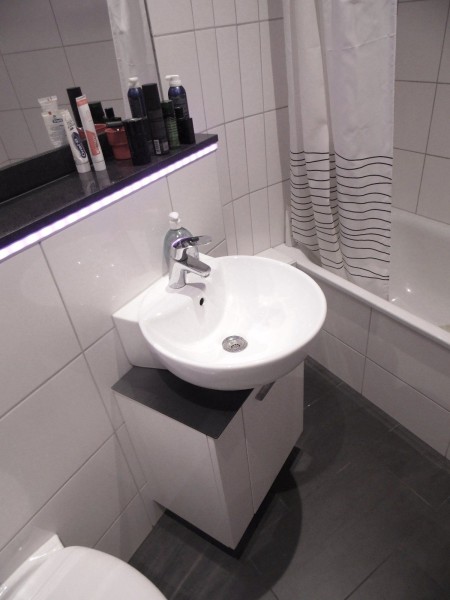 Bad mit Badewanne, Waschmaschine, Einbauküche befinden sich ebenfalls in der Wohnung.