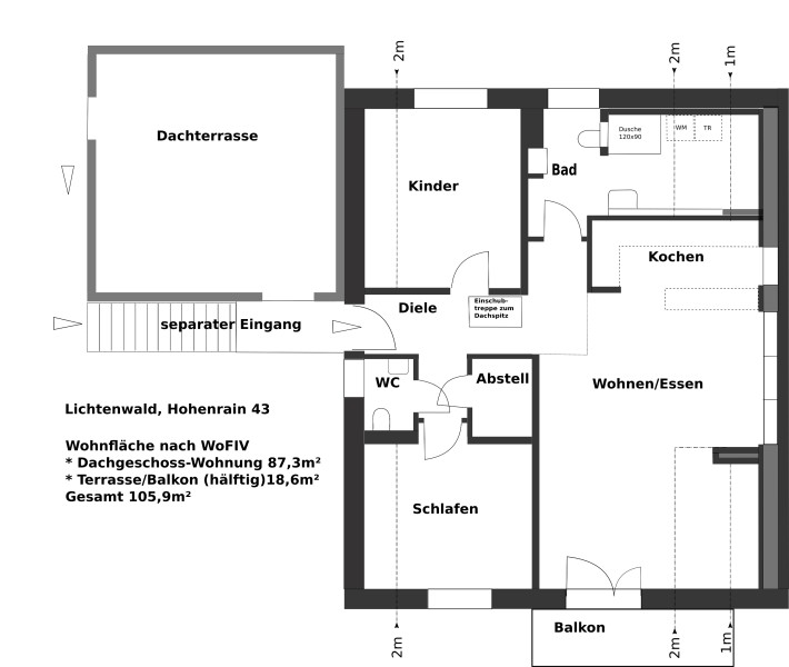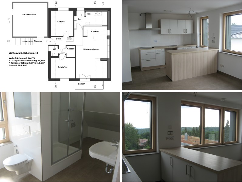 Lichtenwald: 3,5-Zi-DG-Whg in 2-Fam-Haus mit Fernblick ab 1.2.24 Energieeffizienzklasse A+, Baujahr 2016, Lüftungsanlage mit Wärmerückgewinnung, Fußbodenheizung, Einbauküche an NR