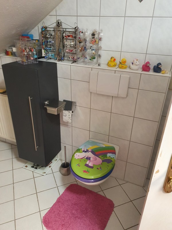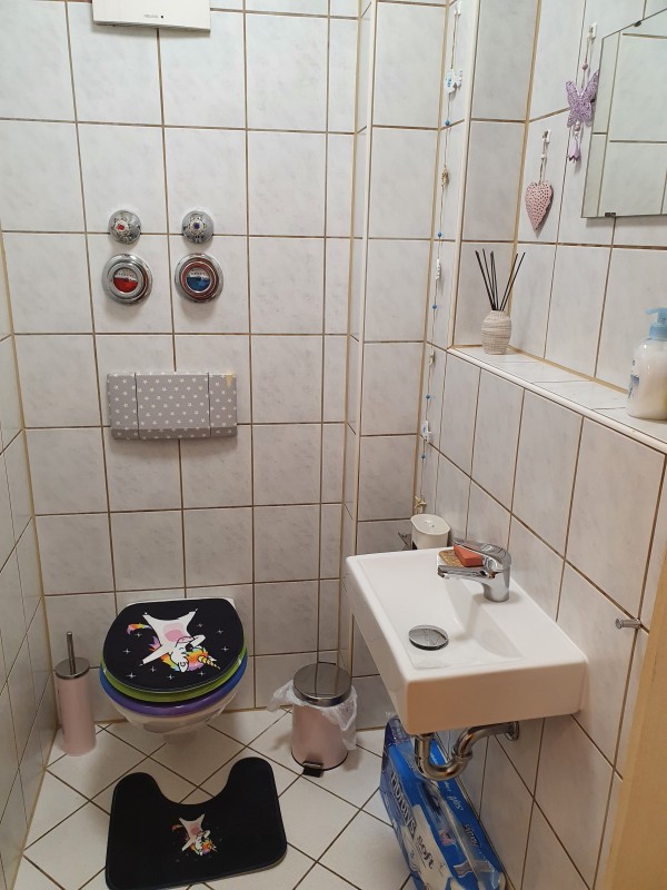 Gäste WC , Abstellkammer, langer Flur, großer Keller, Gemeinschafts-Waschküche und - Garten runden die Wohnung ab .
