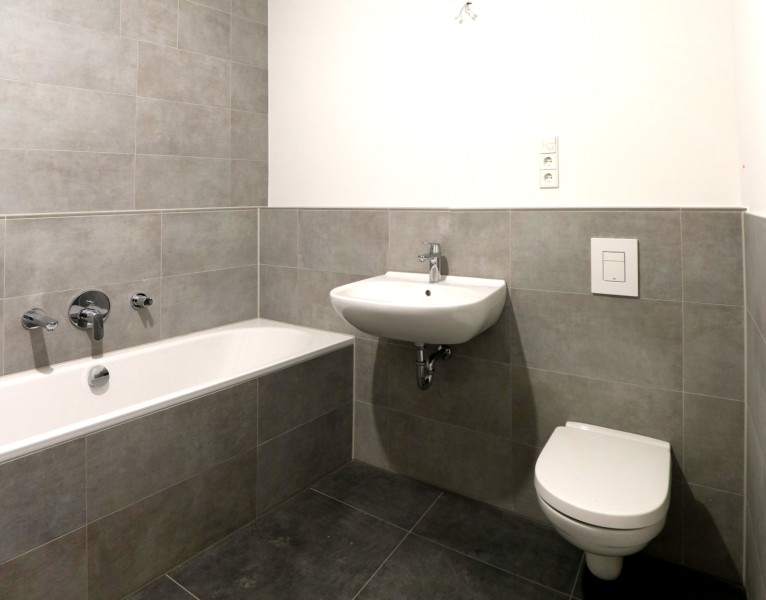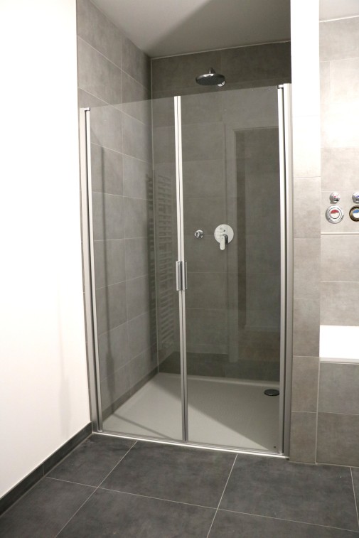 - Geräumiges, modernes Badezimmer mit bodentiefer Dusche und Badewanne