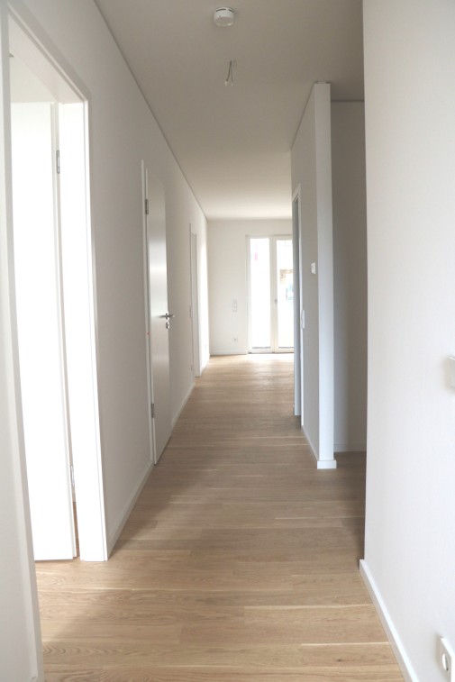 - Parkettboden in Wohn- und Schlafzimmern, Flur und Küche; Fußbodenheizung