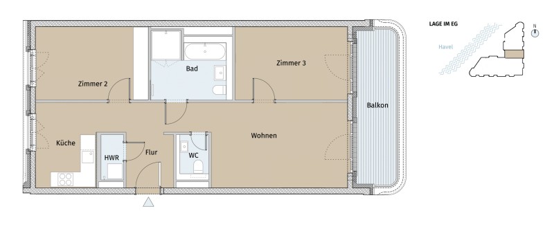 Wir freuen uns, Ihnen eine exklusive 3-Zimmer-Wohnung mit einer Wohnfläche von ca. 81 m² in erstklassiger City- und Wasserlage im Havel Quartier Potsdam zur Erstvermietung anbieten zu können. Die Wohnung befindet sich im Erdgeschoss und zeichnet sich durch ihren makellosen Zustand, einen großen Balkon, eine gehobene Ausstattung einschließlich Einbauküche und ihre Barrierefreiheit aus. Ein besonderer Vorzug dieser Wohnung ist der Blick auf die Havel, den Sie sowohl von der Küche als auch von einem der Schlafzimmer genießen können. Die Wohnung profitiert von ihrer Nähe zur historischen und grünen Innenstadt Potsdams, der malerischen Wasserlage mit Uferpromenade und der Aussicht auf die Kleingartenanlagen am Hinzberg, sowie von einer idealen Anbindung an den ÖPNV. Auch das Pendeln nach Berlin Mitte ist in weniger als 30 Minuten möglich! Der Einzug ist ab sofort möglich.