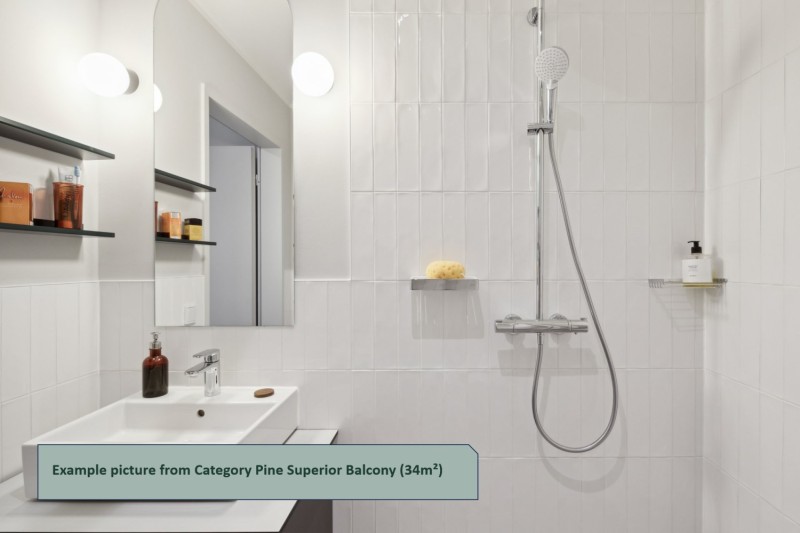 Bilder, Grundrisse und dargestellte Möblierung sind Beispiele unseres Musterzimmers der Kategorie Pine Superior Balcony und können je nach Kategorie abweichen.