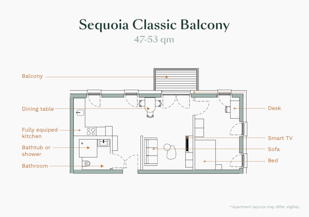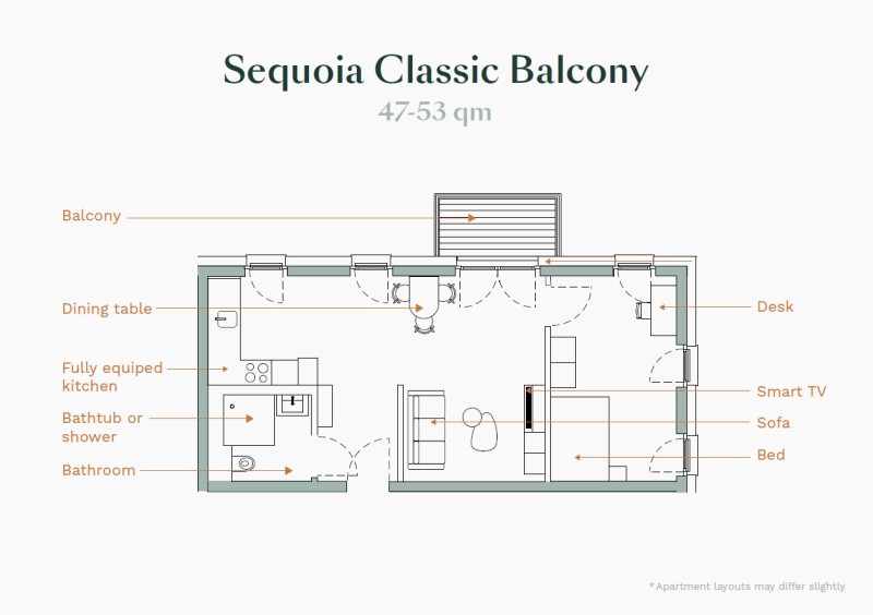 Willkommen in Ihrem neuen zu Hause. Genießen Sie eines unserer größten Wohneinheiten und machen Sie den Unterschied für Ihr Leben auch beim Wohnen aus. Auf 50-53 Quadratmetern haben wir das Maximum an Wohlfühlcharme für Sie herausgeholt. Mit separatem Wohn- und Essbereich sowie offener Küche, bietet Ihnen dieses Apartment alles für Ihren Aufenthalt. Wohnen und Arbeiten Sie von zu Hause, wenn Sie mögen. Kommen Sie zusammen mit Familie und Freunden oder entspannen Sie für sich ganz allein innerhalb Ihrer 4 Wände oder auf Ihrem privaten Balkon.
