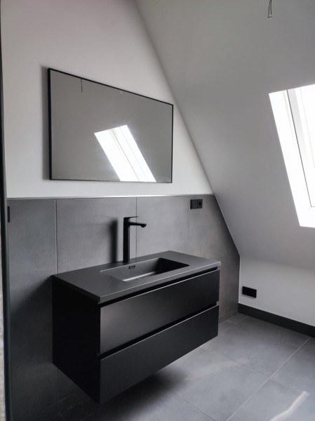 Cooler Kontrast durch schwarze Balken.Gehobene Ausstattung.EBK ist vorhanden mit Ablöse.Mieten ohne EBK möglich.Fußbodenheizung im Bad.Hochwertiger Vinylboden in den Räumen.