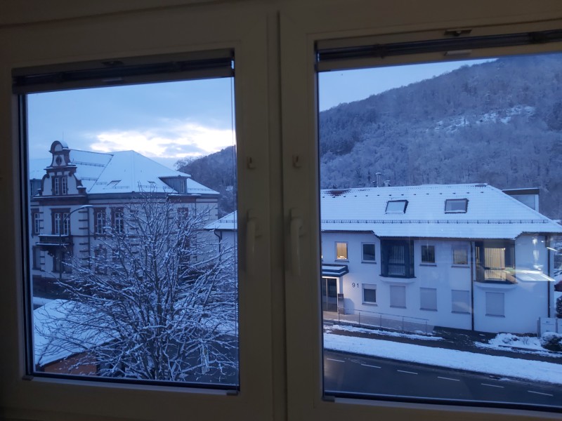 Die Wohnung befindet sich direkt vor einer Bushaltestelle. 7 Minuten Fußweg oder 2 Minuten mit dem Bus zum Bahnhof "Mosbach (Baden)".